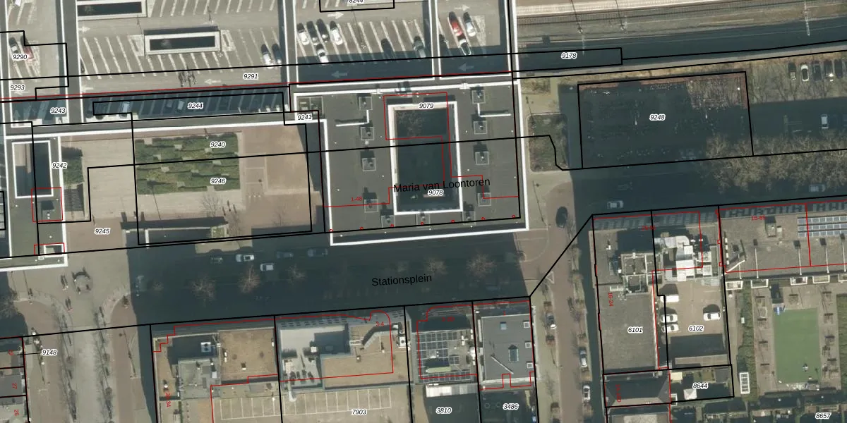 Het perceel waarop Stationsplein 48 staat heeft een oppervlakte van 880 m². Dit is een groot perceel. De perceeloppervlakte wordt geregistreerd door het Kadaster. Gedetailleerde informatie over de maten van dit perceel kunt u vinden in het rapport Kadastrale kaart met maatvoering van Stationsplein 48.