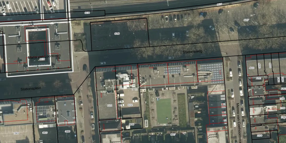 Het perceel waarop Stationsweg 39 staat heeft een oppervlakte van 8208 m². Dit is een zeer groot perceel. De perceeloppervlakte wordt geregistreerd door het Kadaster. Gedetailleerde informatie over de maten van dit perceel kunt u vinden in het rapport Kadastrale kaart met maatvoering van Stationsweg 39.