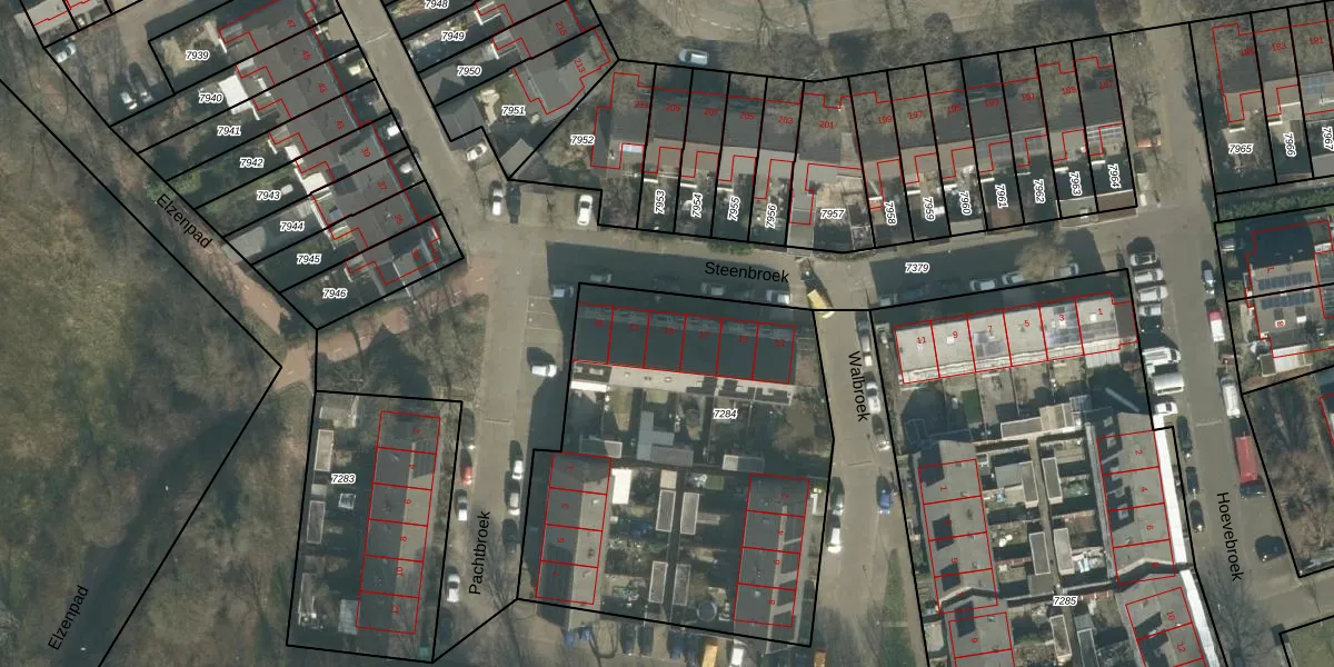 Het perceel waarop Steenbroek 19 staat heeft een oppervlakte van 2033 m². Dit is een zeer groot perceel. De perceeloppervlakte wordt geregistreerd door het Kadaster. Gedetailleerde informatie over de maten van dit perceel kunt u vinden in het rapport Kadastrale kaart met maatvoering van Steenbroek 19.