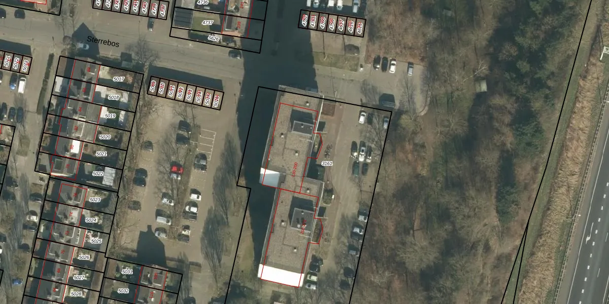 Het perceel waarop Sterrebos 132 staat heeft een oppervlakte van 3100 m². Dit is een zeer groot perceel. De perceeloppervlakte wordt geregistreerd door het Kadaster. Gedetailleerde informatie over de maten van dit perceel kunt u vinden in het rapport Kadastrale kaart met maatvoering van Sterrebos 132.
