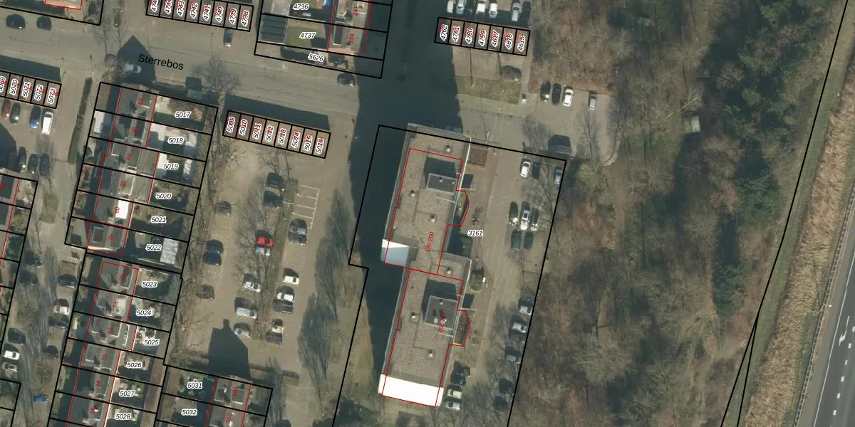 Het perceel waarop Sterrebos 156 staat heeft een oppervlakte van 3100 m². Dit is een zeer groot perceel. De perceeloppervlakte wordt geregistreerd door het Kadaster. Gedetailleerde informatie over de maten van dit perceel kunt u vinden in het rapport Kadastrale kaart met maatvoering van Sterrebos 156.
