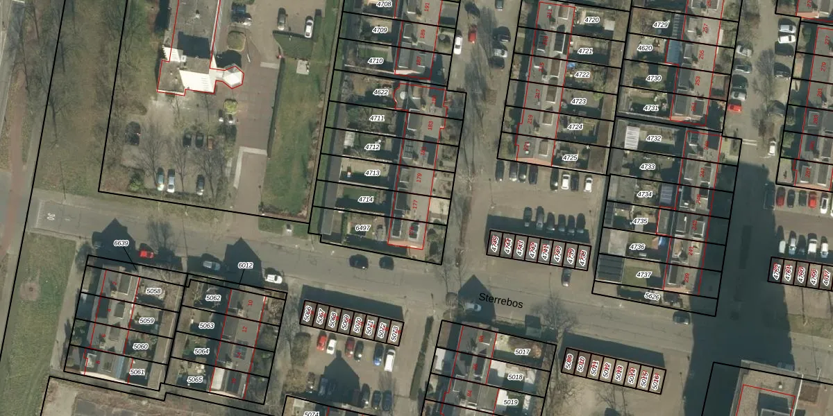 Gebruik de zoekbalk of klik op een perceel voor informatie over de adressen binnen dit perceel.