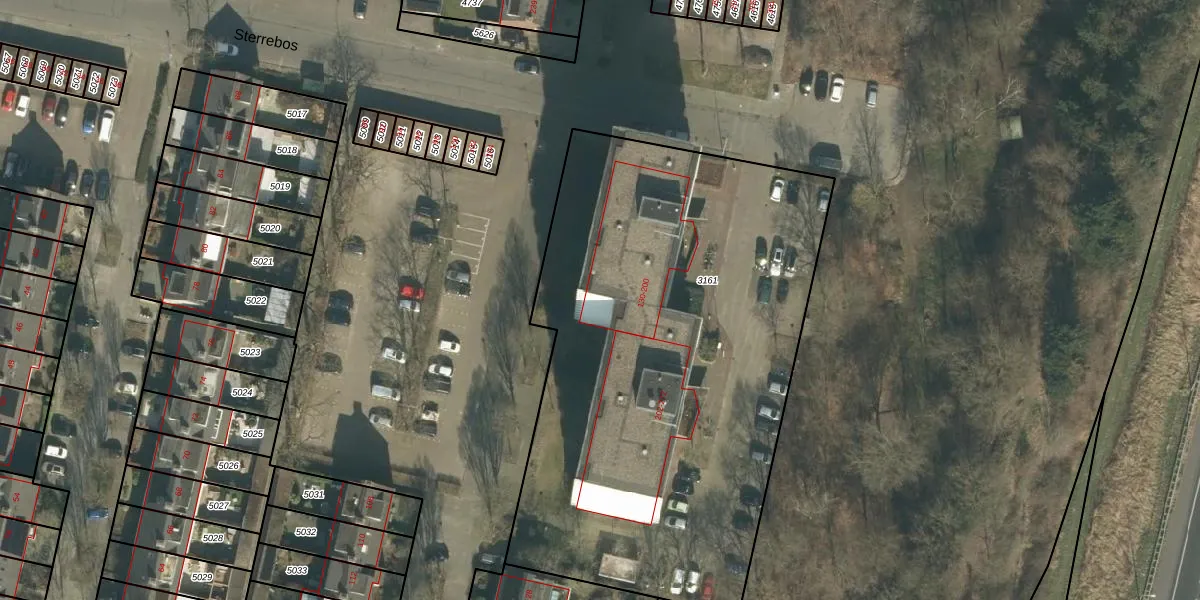 Het perceel waarop Sterrebos 188 staat heeft een oppervlakte van 3100 m². Dit is een zeer groot perceel. De perceeloppervlakte wordt geregistreerd door het Kadaster. Gedetailleerde informatie over de maten van dit perceel kunt u vinden in het rapport Kadastrale kaart met maatvoering van Sterrebos 188.