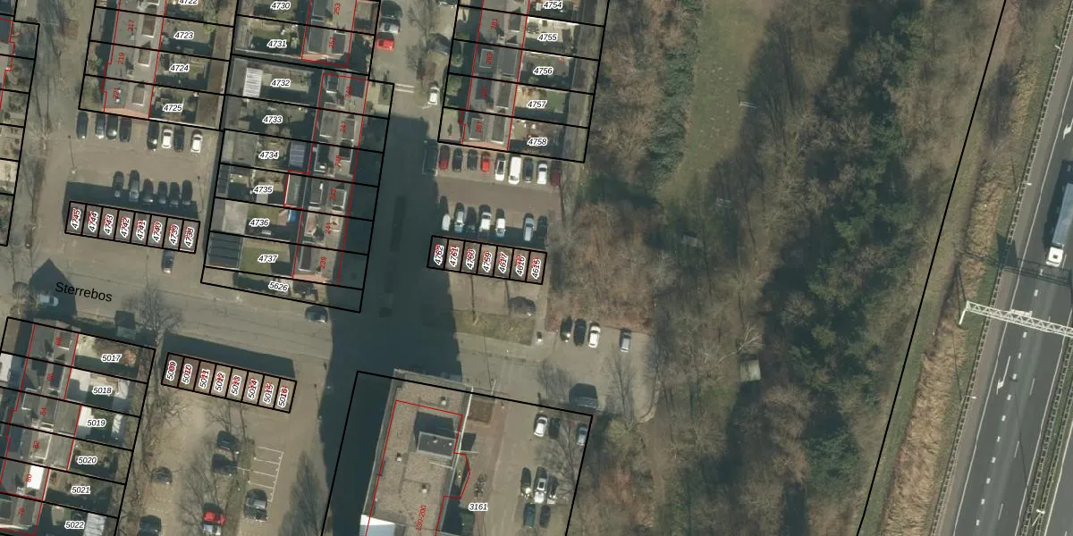 Het perceel waarop Sterrebos 301 staat heeft een oppervlakte van 20 m². Dit is een klein perceel. De perceeloppervlakte wordt geregistreerd door het Kadaster. Gedetailleerde informatie over de maten van dit perceel kunt u vinden in het rapport Kadastrale kaart met maatvoering van Sterrebos 301.