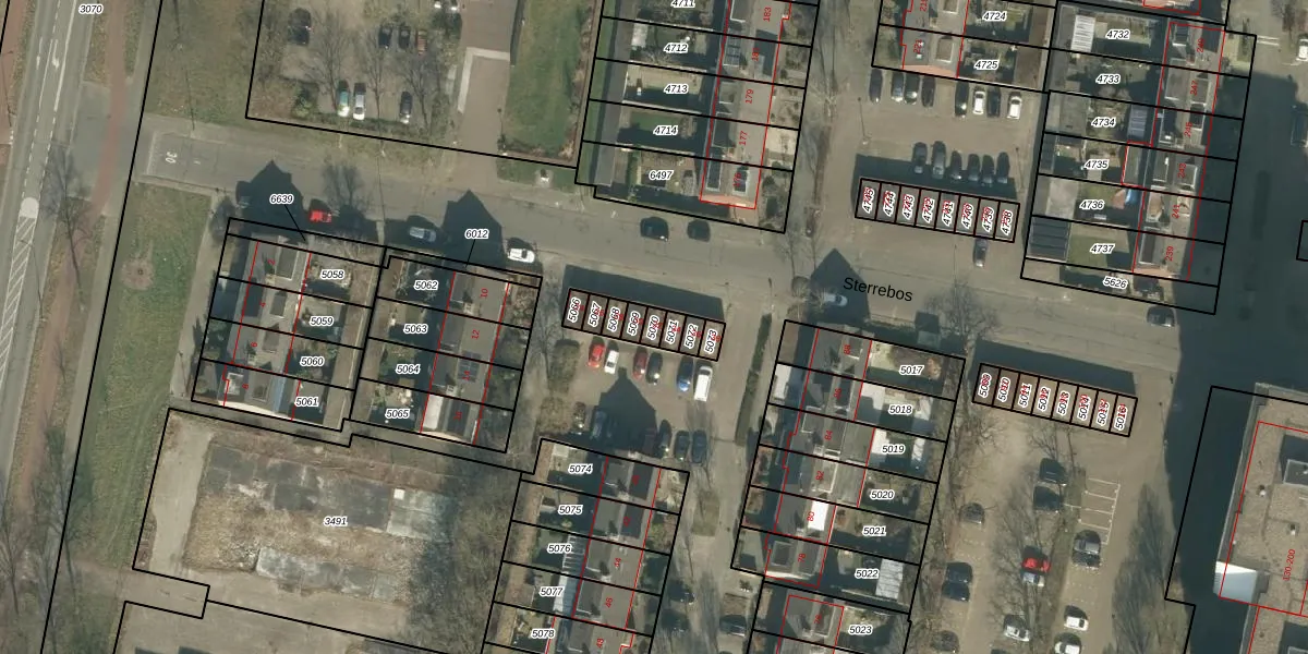 Het perceel waarop Sterrebos 32 staat heeft een oppervlakte van 18 m². Dit is een klein perceel. De perceeloppervlakte wordt geregistreerd door het Kadaster. Gedetailleerde informatie over de maten van dit perceel kunt u vinden in het rapport Kadastrale kaart met maatvoering van Sterrebos 32.
