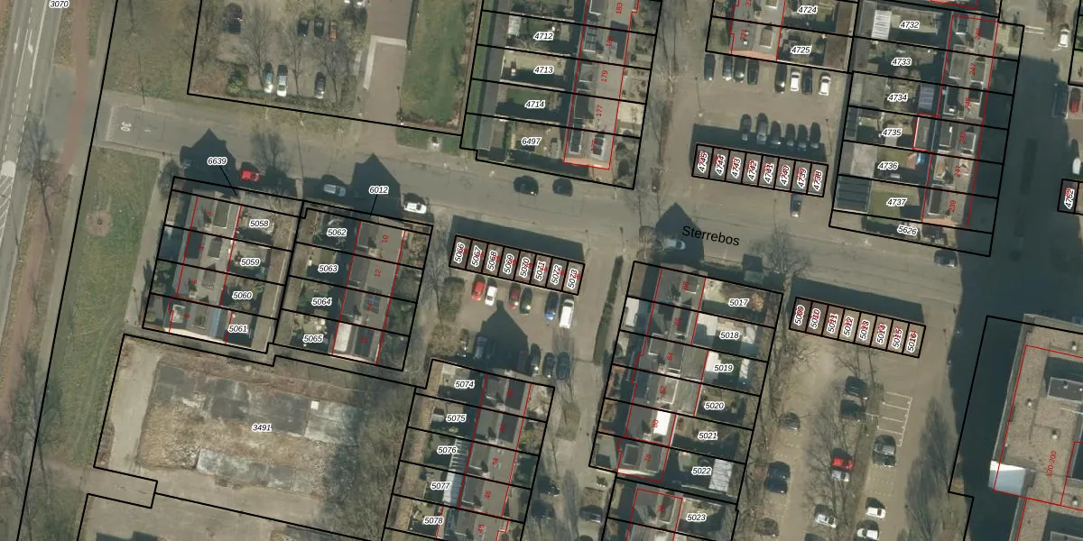 Het perceel waarop Sterrebos 34 staat heeft een oppervlakte van 18 m². Dit is een klein perceel. De perceeloppervlakte wordt geregistreerd door het Kadaster. Gedetailleerde informatie over de maten van dit perceel kunt u vinden in het rapport Kadastrale kaart met maatvoering van Sterrebos 34.