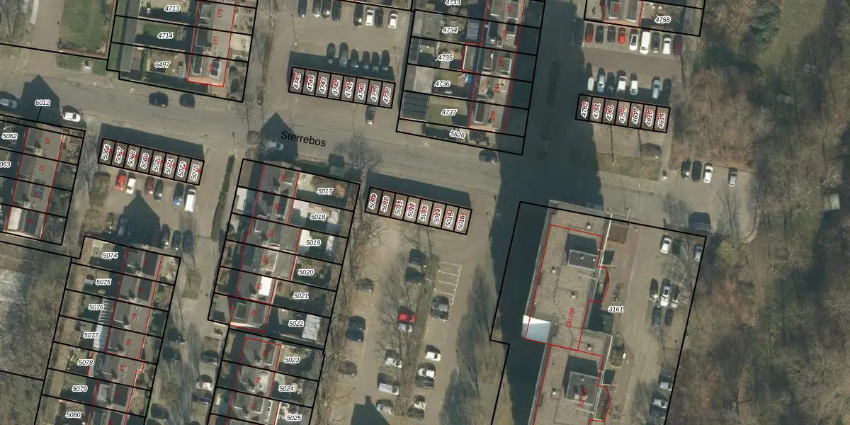 Het perceel waarop Sterrebos 98 staat heeft een oppervlakte van 18 m². Dit is een klein perceel. De perceeloppervlakte wordt geregistreerd door het Kadaster. Gedetailleerde informatie over de maten van dit perceel kunt u vinden in het rapport Kadastrale kaart met maatvoering van Sterrebos 98.