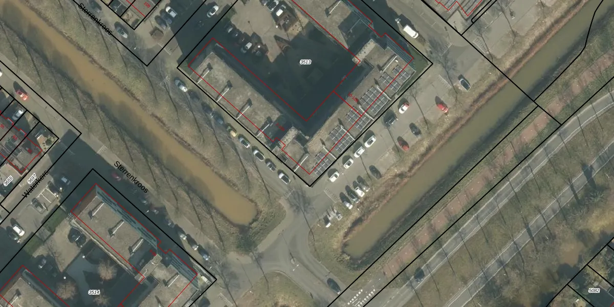 Het perceel waarop Sterrenkroos 84 staat heeft een oppervlakte van 3370 m². Dit is een zeer groot perceel. De perceeloppervlakte wordt geregistreerd door het Kadaster. Gedetailleerde informatie over de maten van dit perceel kunt u vinden in het rapport Kadastrale kaart met maatvoering van Sterrenkroos 84.