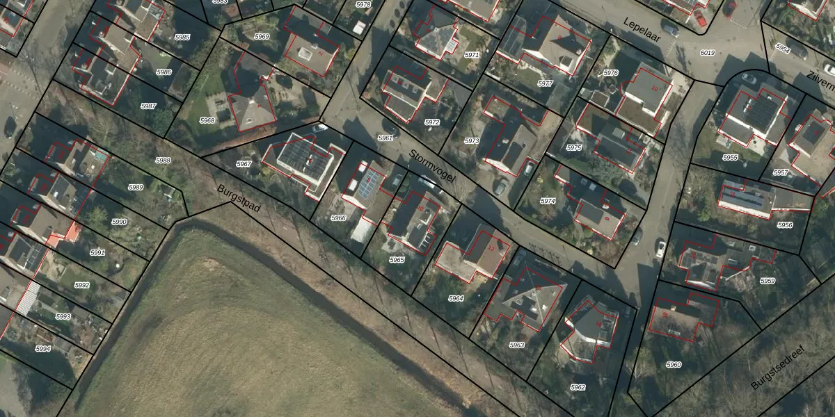 Het perceel waarop Stormvogel 10 staat heeft een oppervlakte van 375 m². Dit is een groot perceel. De perceeloppervlakte wordt geregistreerd door het Kadaster. Gedetailleerde informatie over de maten van dit perceel kunt u vinden in het rapport Kadastrale kaart met maatvoering van Stormvogel 10.