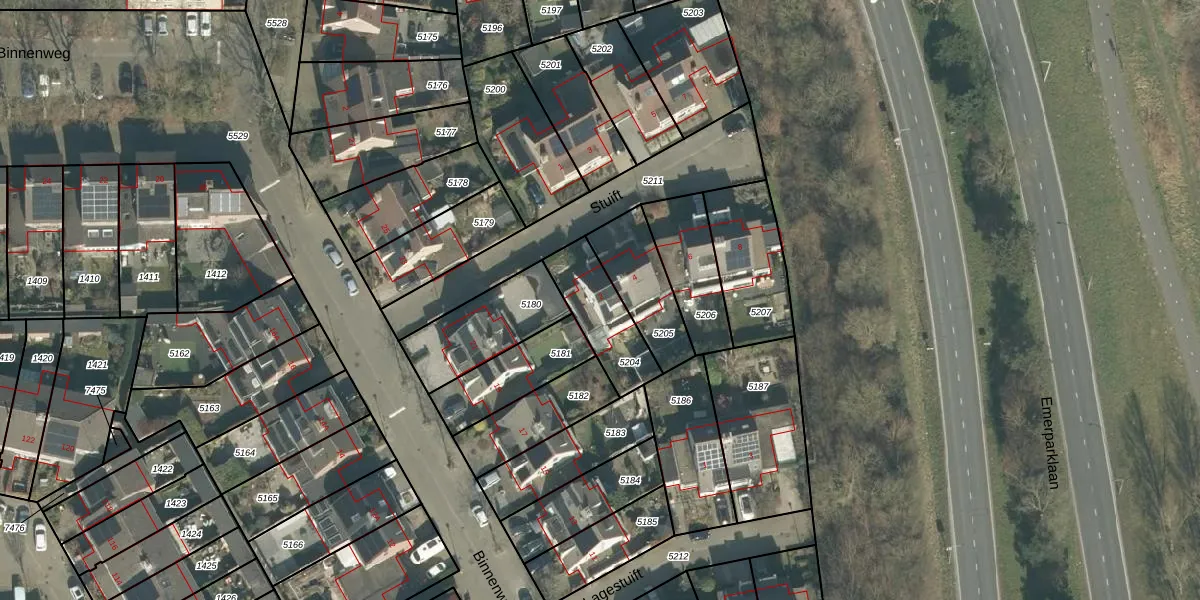 Het perceel waarop Stuift 2 staat heeft een oppervlakte van 218 m². Dit is een middelgroot perceel. De perceeloppervlakte wordt geregistreerd door het Kadaster. Gedetailleerde informatie over de maten van dit perceel kunt u vinden in het rapport Kadastrale kaart met maatvoering van Stuift 2.