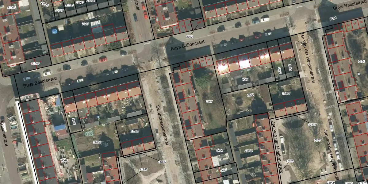 Het perceel waarop Swammerdamstraat 20-A staat heeft een oppervlakte van 1020 m². Dit is een zeer groot perceel. De perceeloppervlakte wordt geregistreerd door het Kadaster. Gedetailleerde informatie over de maten van dit perceel kunt u vinden in het rapport Kadastrale kaart met maatvoering van Swammerdamstraat 20-A.