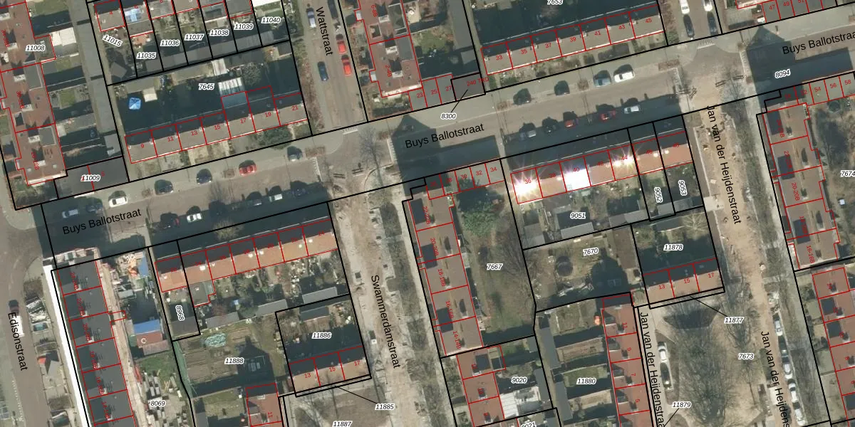 Het perceel waarop Swammerdamstraat 22-A staat heeft een oppervlakte van 1020 m². Dit is een zeer groot perceel. De perceeloppervlakte wordt geregistreerd door het Kadaster. Gedetailleerde informatie over de maten van dit perceel kunt u vinden in het rapport Kadastrale kaart met maatvoering van Swammerdamstraat 22-A.