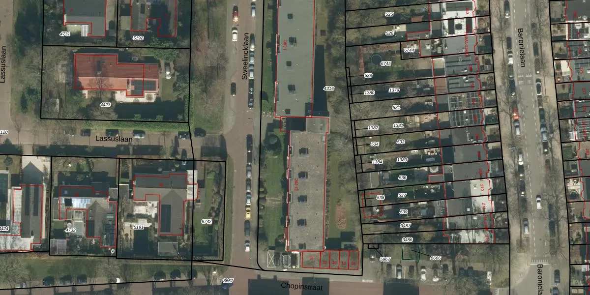Het perceel waarop Sweelincklaan 21-B staat heeft een oppervlakte van 4010 m². Dit is een zeer groot perceel. De perceeloppervlakte wordt geregistreerd door het Kadaster. Gedetailleerde informatie over de maten van dit perceel kunt u vinden in het rapport Kadastrale kaart met maatvoering van Sweelincklaan 21-B.