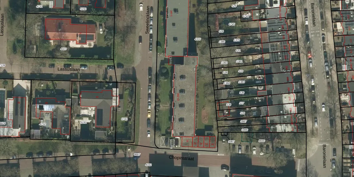 Het perceel waarop Sweelincklaan 23-B staat heeft een oppervlakte van 4010 m². Dit is een zeer groot perceel. De perceeloppervlakte wordt geregistreerd door het Kadaster. Gedetailleerde informatie over de maten van dit perceel kunt u vinden in het rapport Kadastrale kaart met maatvoering van Sweelincklaan 23-B.