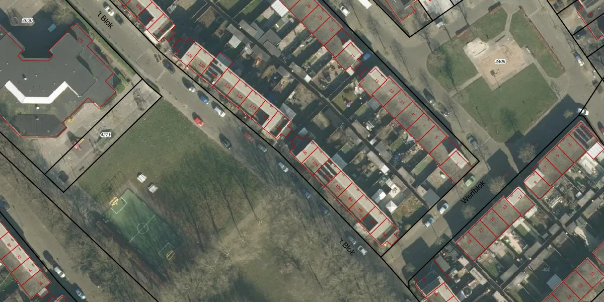 't Blok 106 is gelegen op kadastraal perceel BDA00I3408. Deze kadastrale aanduiding is uniek en wordt gebruikt door het Kadaster om eigendomsrechten en andere zakelijke rechten vast te leggen. Het perceel maakt onderdeel uit van de kadastrale gemeente Breda.