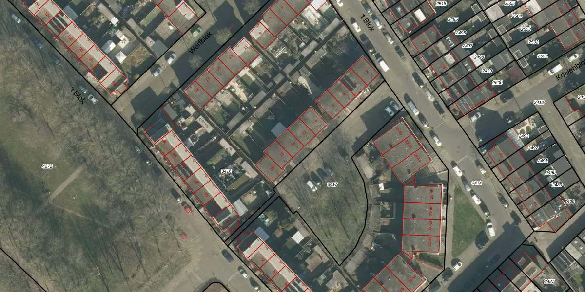 't Blok 14 is gelegen op kadastraal perceel BDA00I3416. Deze kadastrale aanduiding is uniek en wordt gebruikt door het Kadaster om eigendomsrechten en andere zakelijke rechten vast te leggen. Het perceel maakt onderdeel uit van de kadastrale gemeente Breda.