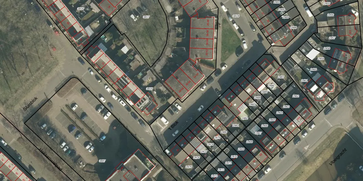 Het perceel waarop 't Blok 38 staat heeft een oppervlakte van 2975 m². Dit is een zeer groot perceel. De perceeloppervlakte wordt geregistreerd door het Kadaster. Gedetailleerde informatie over de maten van dit perceel kunt u vinden in het rapport Kadastrale kaart met maatvoering van 't Blok 38.