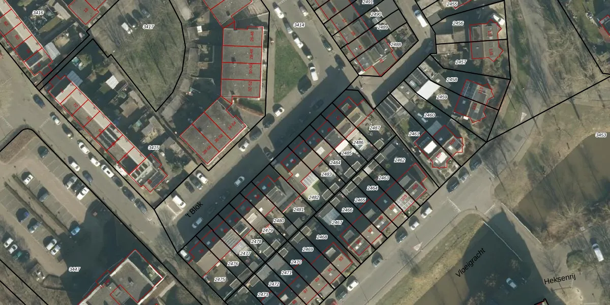 Gebruik de zoekbalk of klik op een perceel voor informatie over de adressen binnen dit perceel.