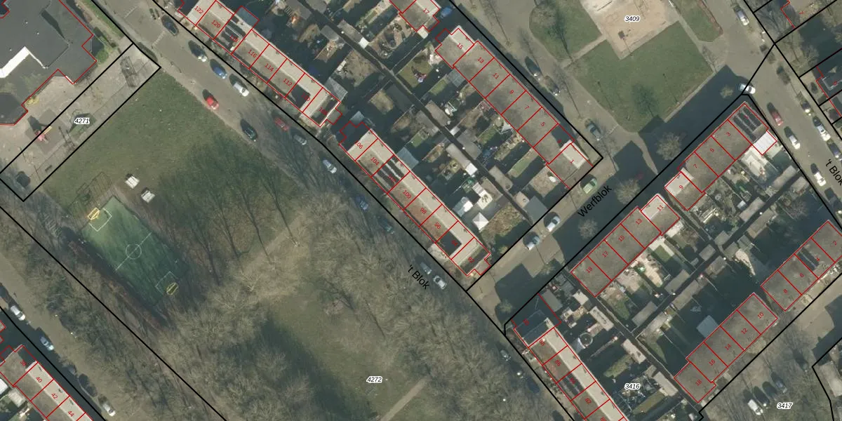 't Blok 98 is gelegen op kadastraal perceel BDA00I3408. Deze kadastrale aanduiding is uniek en wordt gebruikt door het Kadaster om eigendomsrechten en andere zakelijke rechten vast te leggen. Het perceel maakt onderdeel uit van de kadastrale gemeente Breda.