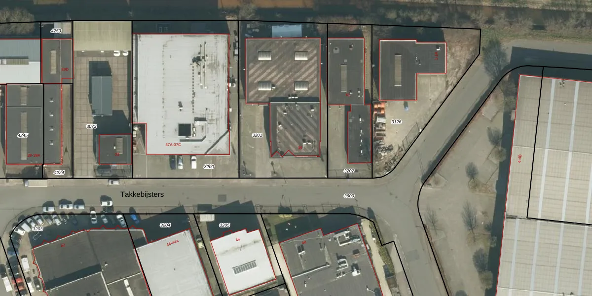Takkebijsters 39 is een adres in Breda, dat zich bevindt binnen de gemeentegrenzen van Breda en de grenzen van de provincie Noord-Brabant. Het object heeft een oppervlakte van 1209 m², wat relatief groot is. Het perceel waarop het adres ligt is 1584 m² groot. In vergelijking met de andere adressen in de straat is de oppervlakte van dit object relatief groot. Het grootste verblijfsobject heeft een oppervlakte van 4350 m², de oppervlakte van het kleinste object bedraagt 10 m². Het pand waarin Takkebijsters 39 ligt is gebouwd in het jaar 1988. Panden die gebouwd zijn na het jaar 1984 noemen we hier relatief nieuw. Het bouwjaar is oud vergeleken met dat van de andere panden in de straat. Het oudste bouwjaar is er 1980 en de nieuwste is 2025. De volgende gebruiksdoelen zijn geregistreerd voor dit adres: 'industriefunctie'.