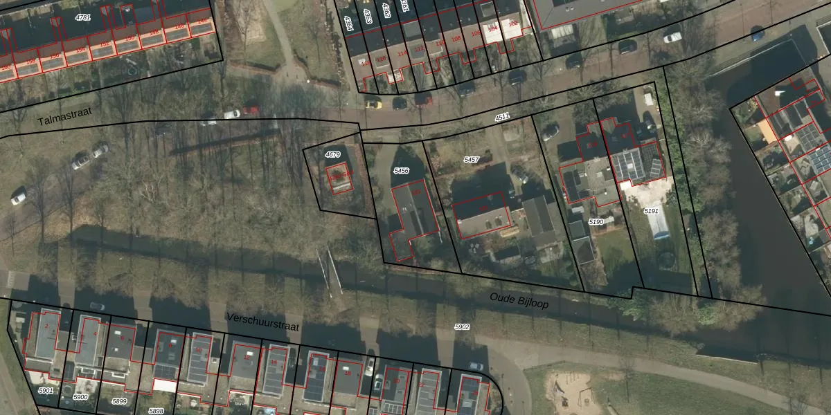 Het perceel waarop Talmastraat 123 staat heeft een oppervlakte van 495 m². Dit is een groot perceel. De perceeloppervlakte wordt geregistreerd door het Kadaster. Gedetailleerde informatie over de maten van dit perceel kunt u vinden in het rapport Kadastrale kaart met maatvoering van Talmastraat 123.