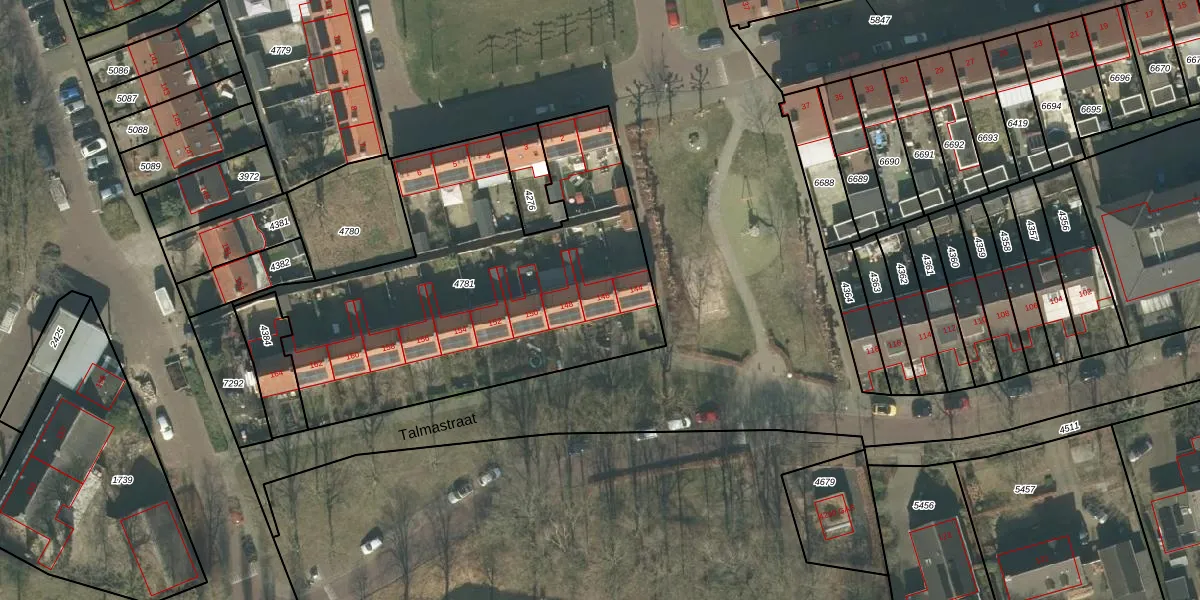 Het perceel waarop Talmastraat 146 staat heeft een oppervlakte van 2013 m². Dit is een zeer groot perceel. De perceeloppervlakte wordt geregistreerd door het Kadaster. Gedetailleerde informatie over de maten van dit perceel kunt u vinden in het rapport Kadastrale kaart met maatvoering van Talmastraat 146.