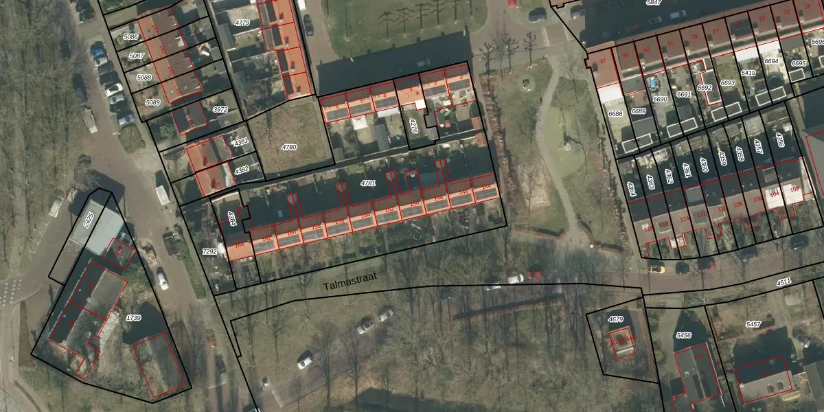 Talmastraat 150 is gelegen op kadastraal perceel PCH00I4781. Deze kadastrale aanduiding is uniek en wordt gebruikt door het Kadaster om eigendomsrechten en andere zakelijke rechten vast te leggen. Het perceel maakt onderdeel uit van de kadastrale gemeente Princenhage.
