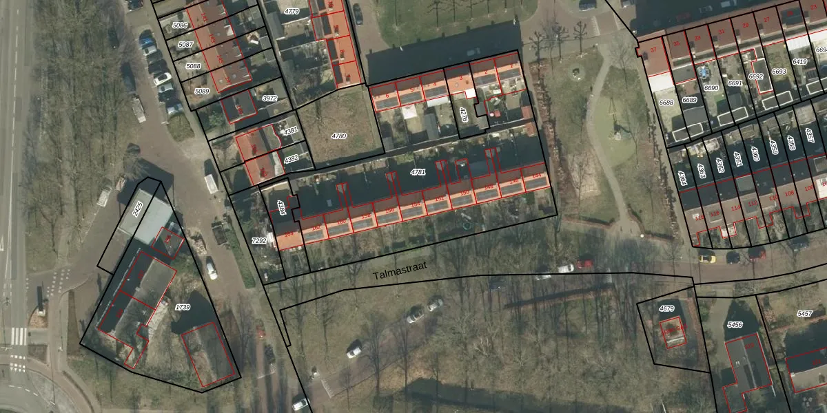 Talmastraat 154 is gelegen op kadastraal perceel PCH00I4781. Deze kadastrale aanduiding is uniek en wordt gebruikt door het Kadaster om eigendomsrechten en andere zakelijke rechten vast te leggen. Het perceel maakt onderdeel uit van de kadastrale gemeente Princenhage.