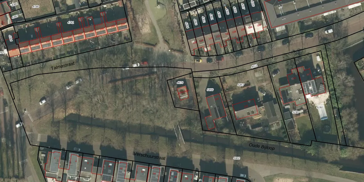 Talmastraat 4290-GAS is gelegen op kadastraal perceel PCH00I4679. Deze kadastrale aanduiding is uniek en wordt gebruikt door het Kadaster om eigendomsrechten en andere zakelijke rechten vast te leggen. Het perceel maakt onderdeel uit van de kadastrale gemeente Princenhage.