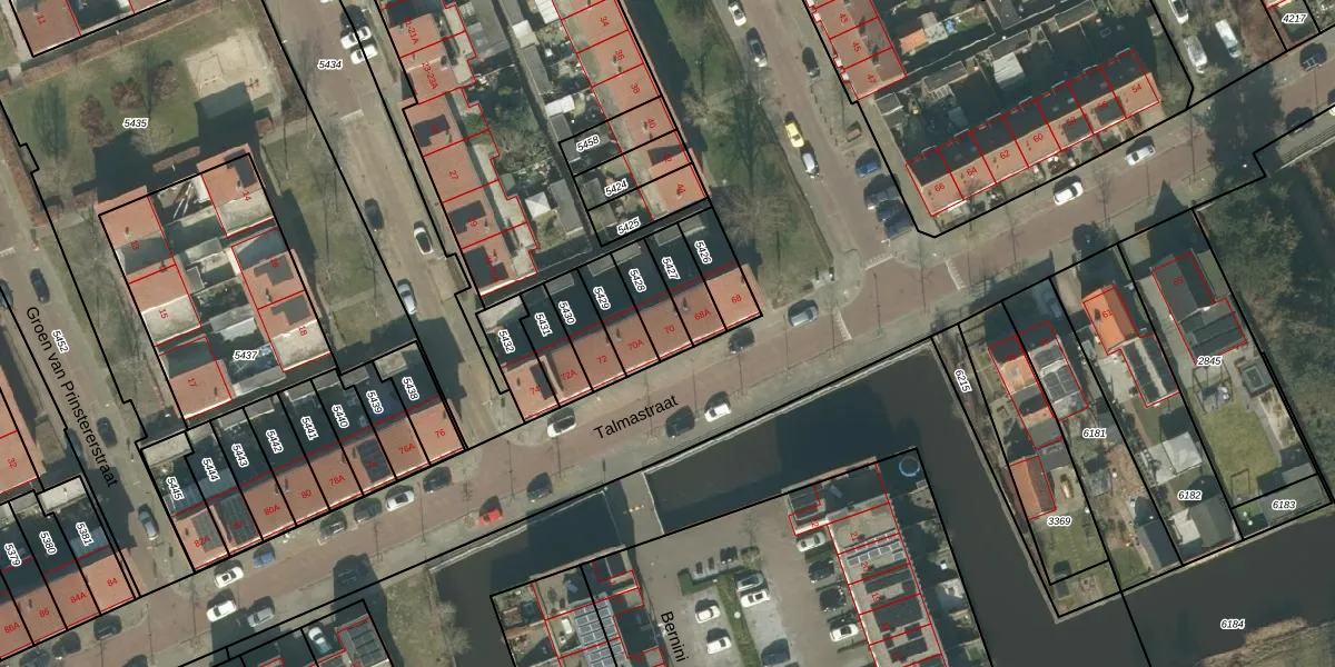 Het perceel waarop Talmastraat 70 staat heeft een oppervlakte van 99 m². Dit is een klein perceel. De perceeloppervlakte wordt geregistreerd door het Kadaster. Gedetailleerde informatie over de maten van dit perceel kunt u vinden in het rapport Kadastrale kaart met maatvoering van Talmastraat 70.