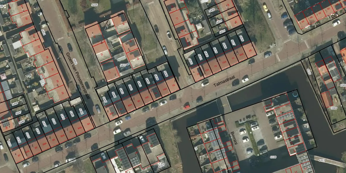 Het perceel waarop Talmastraat 76 staat heeft een oppervlakte van 107 m². Dit is een middelgroot perceel. De perceeloppervlakte wordt geregistreerd door het Kadaster. Gedetailleerde informatie over de maten van dit perceel kunt u vinden in het rapport Kadastrale kaart met maatvoering van Talmastraat 76.