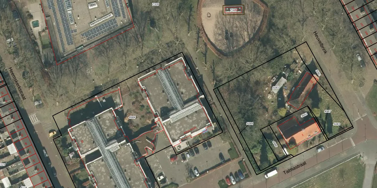 Het perceel waarop Talmastraat 8-C19 staat heeft een oppervlakte van 4400 m². Dit is een zeer groot perceel. De perceeloppervlakte wordt geregistreerd door het Kadaster. Gedetailleerde informatie over de maten van dit perceel kunt u vinden in het rapport Kadastrale kaart met maatvoering van Talmastraat 8-C19.
