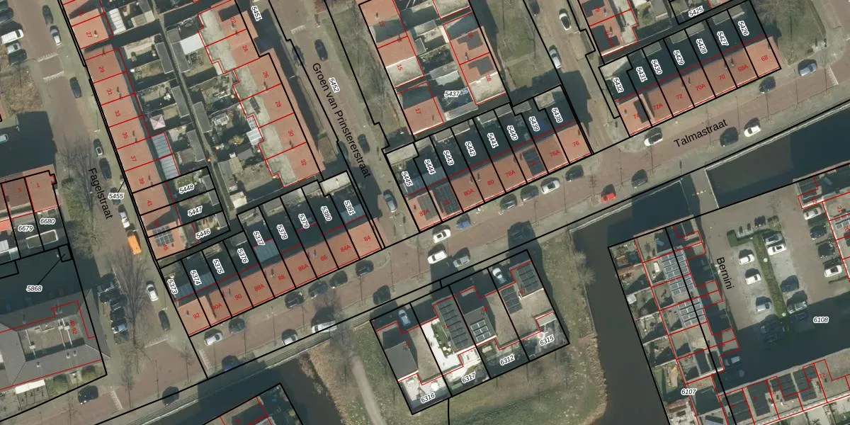 Het perceel waarop Talmastraat 82-A staat heeft een oppervlakte van 121 m². Dit is een middelgroot perceel. De perceeloppervlakte wordt geregistreerd door het Kadaster. Gedetailleerde informatie over de maten van dit perceel kunt u vinden in het rapport Kadastrale kaart met maatvoering van Talmastraat 82-A.