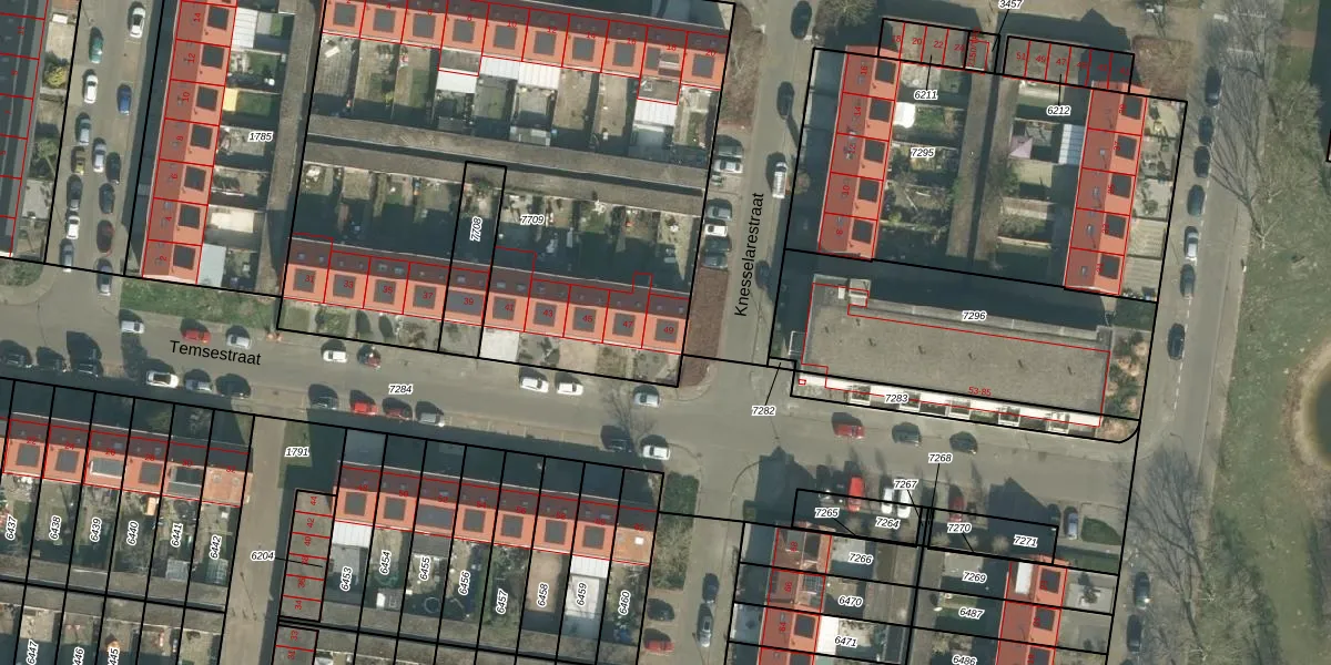 Het perceel waarop Temsestraat 49 staat heeft een oppervlakte van 3360 m². Dit is een zeer groot perceel. De perceeloppervlakte wordt geregistreerd door het Kadaster. Gedetailleerde informatie over de maten van dit perceel kunt u vinden in het rapport Kadastrale kaart met maatvoering van Temsestraat 49.