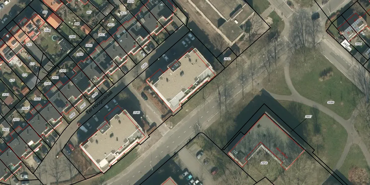 Het perceel waarop Ter Hoogestraat 34 staat heeft een oppervlakte van 2616 m². Dit is een zeer groot perceel. De perceeloppervlakte wordt geregistreerd door het Kadaster. Gedetailleerde informatie over de maten van dit perceel kunt u vinden in het rapport Kadastrale kaart met maatvoering van Ter Hoogestraat 34.