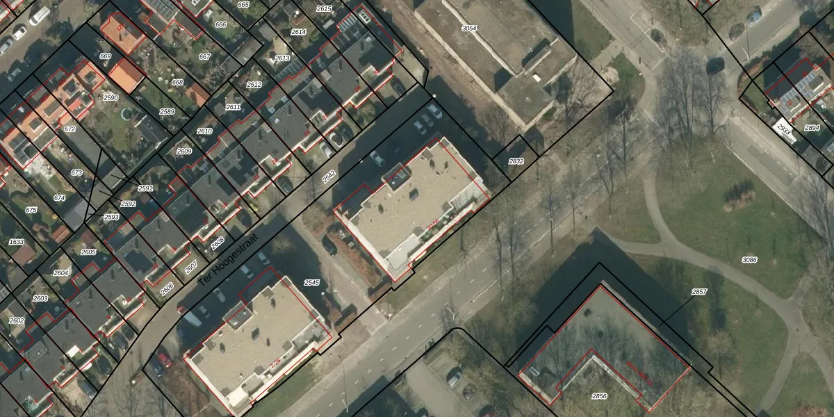 Het perceel waarop Ter Hoogestraat 44 staat heeft een oppervlakte van 2616 m². Dit is een zeer groot perceel. De perceeloppervlakte wordt geregistreerd door het Kadaster. Gedetailleerde informatie over de maten van dit perceel kunt u vinden in het rapport Kadastrale kaart met maatvoering van Ter Hoogestraat 44.
