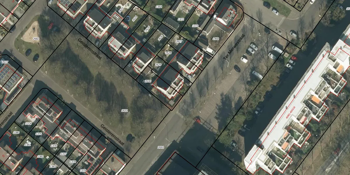 Ter Merwestraat 7 is gelegen op kadastraal perceel GNK02M2629. Deze kadastrale aanduiding is uniek en wordt gebruikt door het Kadaster om eigendomsrechten en andere zakelijke rechten vast te leggen. Het perceel maakt onderdeel uit van de kadastrale gemeente Ginneken.