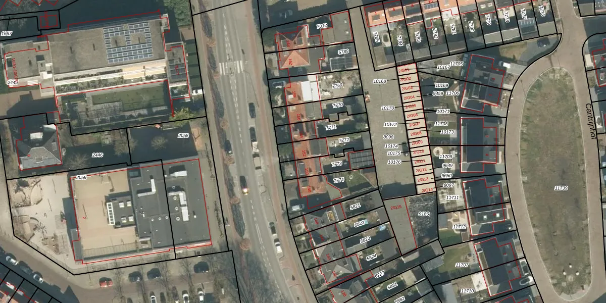 Gebruik de zoekbalk of klik op een perceel voor informatie over de adressen binnen dit perceel.