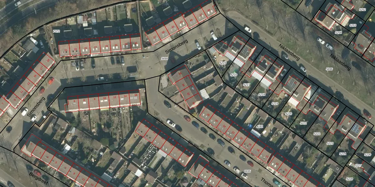 Thomasberg 32 is gelegen op kadastraal perceel BDA00H4191. Deze kadastrale aanduiding is uniek en wordt gebruikt door het Kadaster om eigendomsrechten en andere zakelijke rechten vast te leggen. Het perceel maakt onderdeel uit van de kadastrale gemeente Breda.