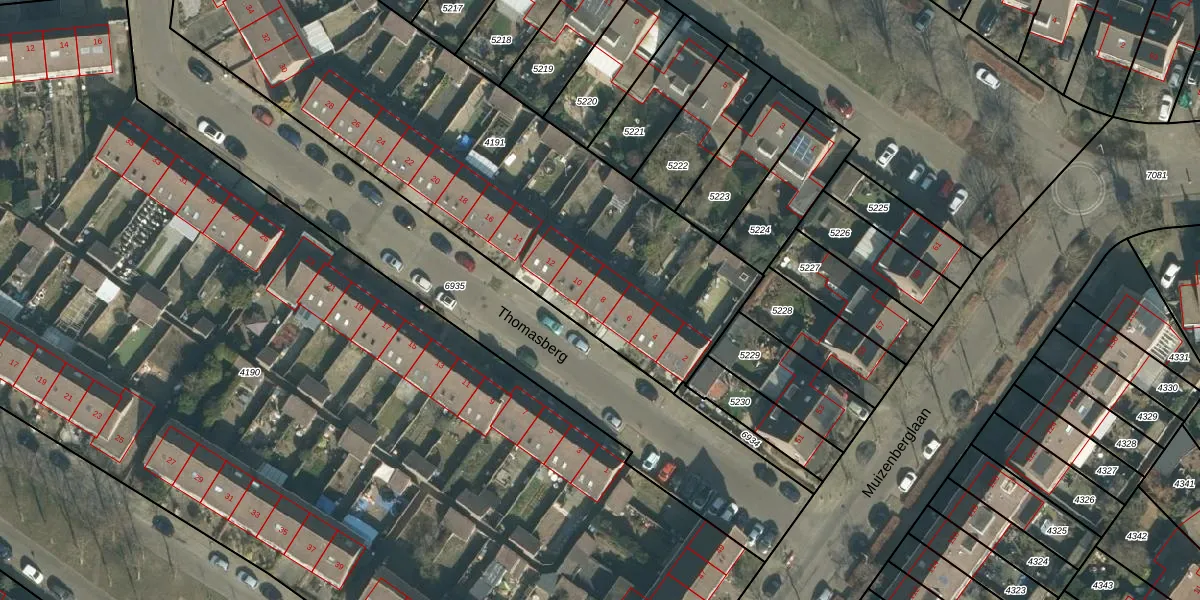 Het perceel waarop Thomasberg 8 staat heeft een oppervlakte van 2651 m². Dit is een zeer groot perceel. De perceeloppervlakte wordt geregistreerd door het Kadaster. Gedetailleerde informatie over de maten van dit perceel kunt u vinden in het rapport Kadastrale kaart met maatvoering van Thomasberg 8.