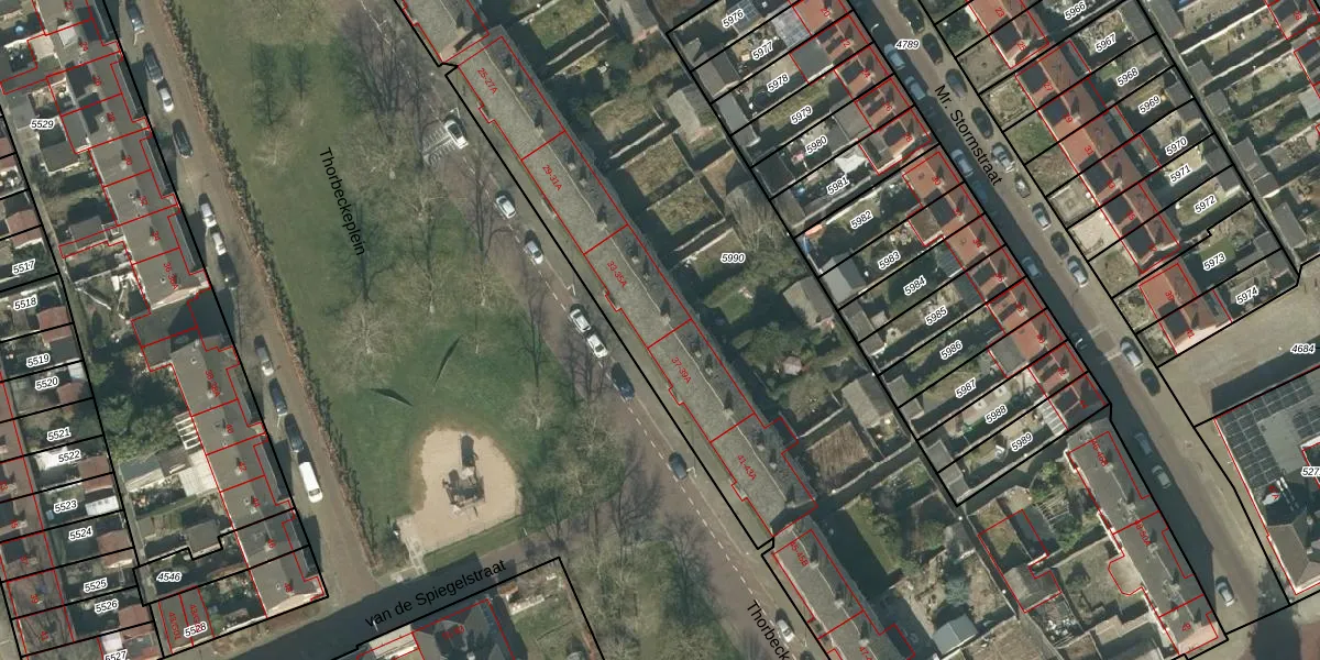 Thorbeckeplein 35-A is gelegen op kadastraal perceel PCH00I5990. Deze kadastrale aanduiding is uniek en wordt gebruikt door het Kadaster om eigendomsrechten en andere zakelijke rechten vast te leggen. Het perceel maakt onderdeel uit van de kadastrale gemeente Princenhage.