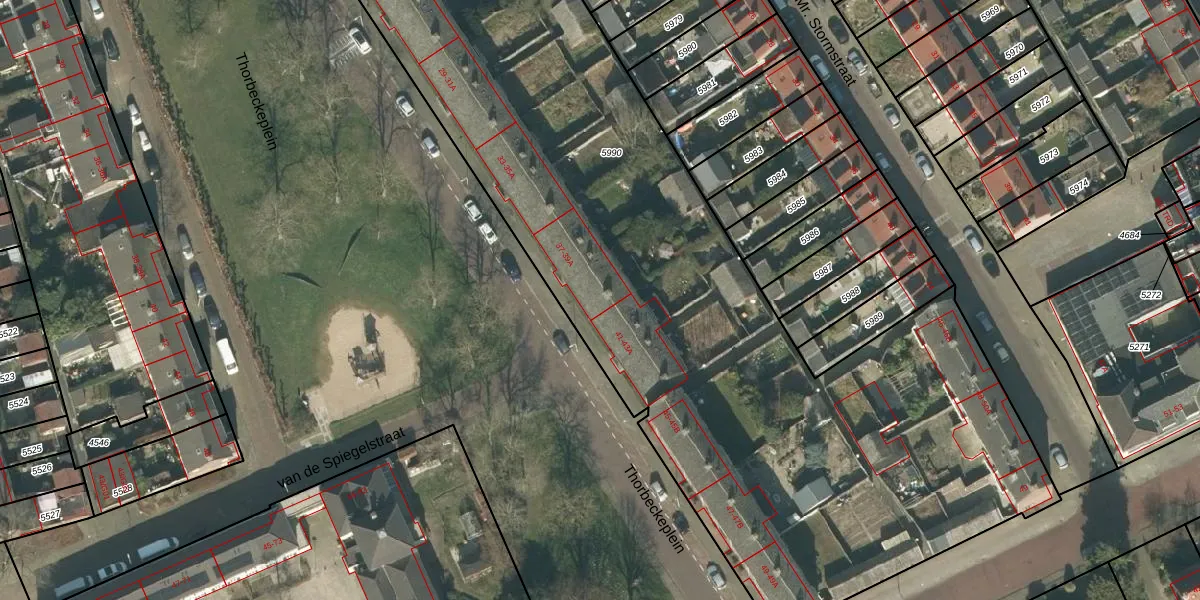 Thorbeckeplein 39-A is gelegen op kadastraal perceel PCH00I5990. Deze kadastrale aanduiding is uniek en wordt gebruikt door het Kadaster om eigendomsrechten en andere zakelijke rechten vast te leggen. Het perceel maakt onderdeel uit van de kadastrale gemeente Princenhage.