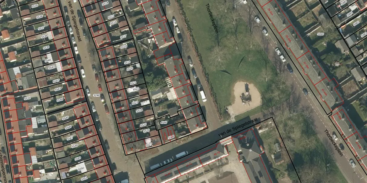 Het perceel waarop Thorbeckeplein 42 staat heeft een oppervlakte van 2753 m². Dit is een zeer groot perceel. De perceeloppervlakte wordt geregistreerd door het Kadaster. Gedetailleerde informatie over de maten van dit perceel kunt u vinden in het rapport Kadastrale kaart met maatvoering van Thorbeckeplein 42.