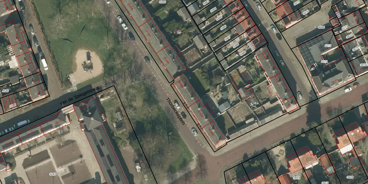 Het perceel waarop Thorbeckeplein 45-A staat heeft een oppervlakte van 8153 m². Dit is een zeer groot perceel. De perceeloppervlakte wordt geregistreerd door het Kadaster. Gedetailleerde informatie over de maten van dit perceel kunt u vinden in het rapport Kadastrale kaart met maatvoering van Thorbeckeplein 45-A.