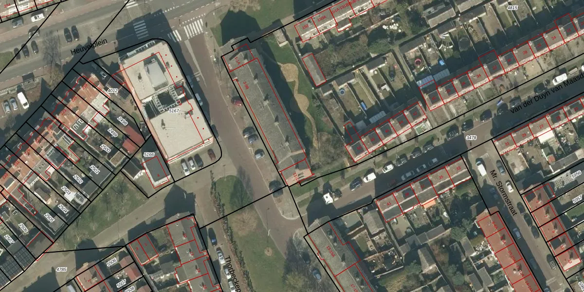 Thorbeckeplein 9-B is gelegen op kadastraal perceel PCH00I4815. Deze kadastrale aanduiding is uniek en wordt gebruikt door het Kadaster om eigendomsrechten en andere zakelijke rechten vast te leggen. Het perceel maakt onderdeel uit van de kadastrale gemeente Princenhage.
