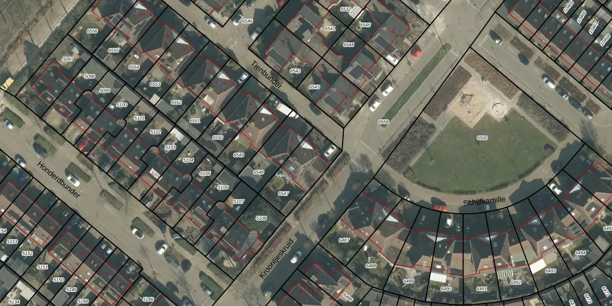 Tienbunder 1 is gelegen op kadastraal perceel BDA00H6547. Deze kadastrale aanduiding is uniek en wordt gebruikt door het Kadaster om eigendomsrechten en andere zakelijke rechten vast te leggen. Het perceel maakt onderdeel uit van de kadastrale gemeente Breda.