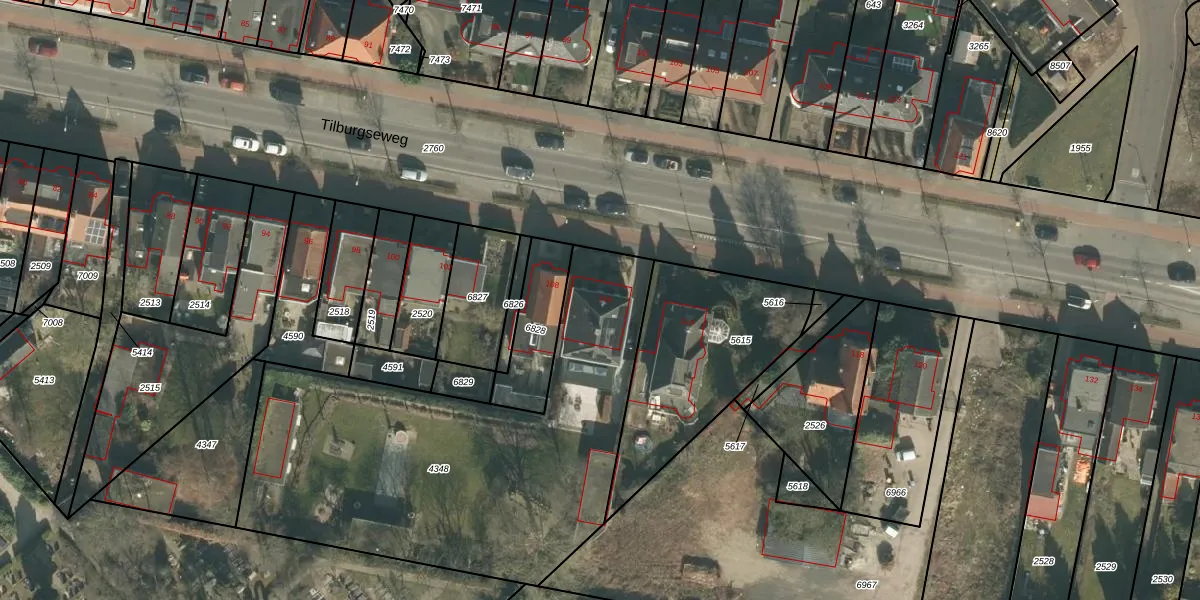 Het perceel waarop Tilburgseweg 110 staat heeft een oppervlakte van 2035 m². Dit is een zeer groot perceel. De perceeloppervlakte wordt geregistreerd door het Kadaster. Gedetailleerde informatie over de maten van dit perceel kunt u vinden in het rapport Kadastrale kaart met maatvoering van Tilburgseweg 110.