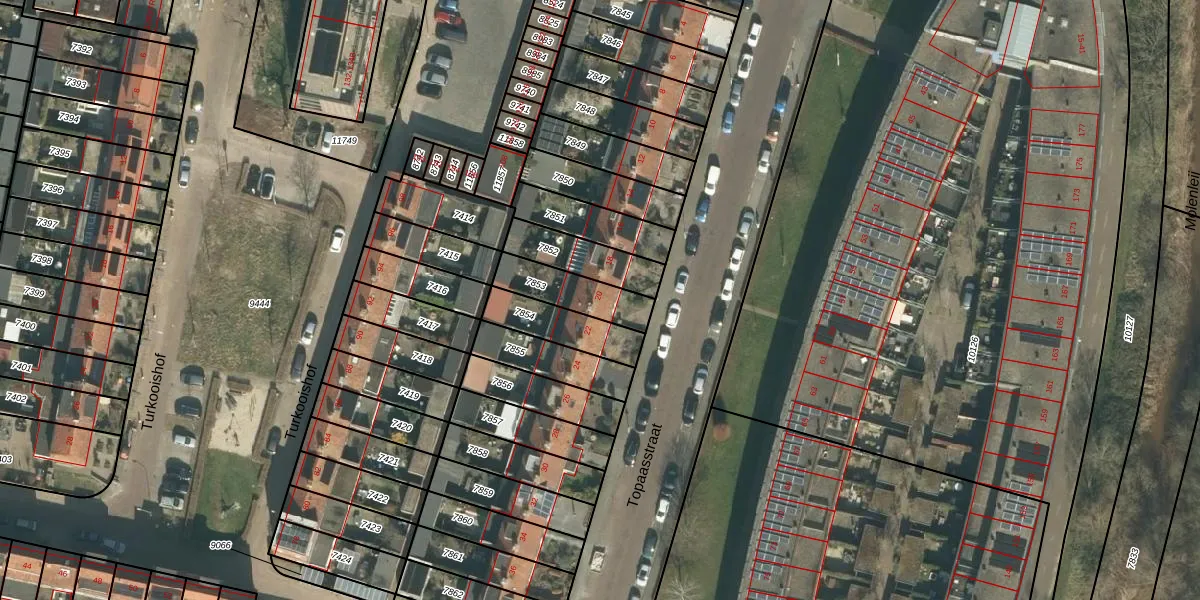 Topaasstraat 20 is gelegen op kadastraal perceel BDA00D7853. Deze kadastrale aanduiding is uniek en wordt gebruikt door het Kadaster om eigendomsrechten en andere zakelijke rechten vast te leggen. Het perceel maakt onderdeel uit van de kadastrale gemeente Breda.