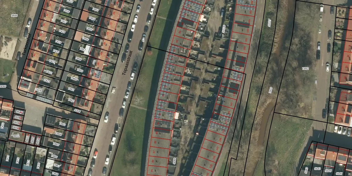 Topaasstraat 73 is gelegen op kadastraal perceel BDA00D9068. Deze kadastrale aanduiding is uniek en wordt gebruikt door het Kadaster om eigendomsrechten en andere zakelijke rechten vast te leggen. Het perceel maakt onderdeel uit van de kadastrale gemeente Breda.