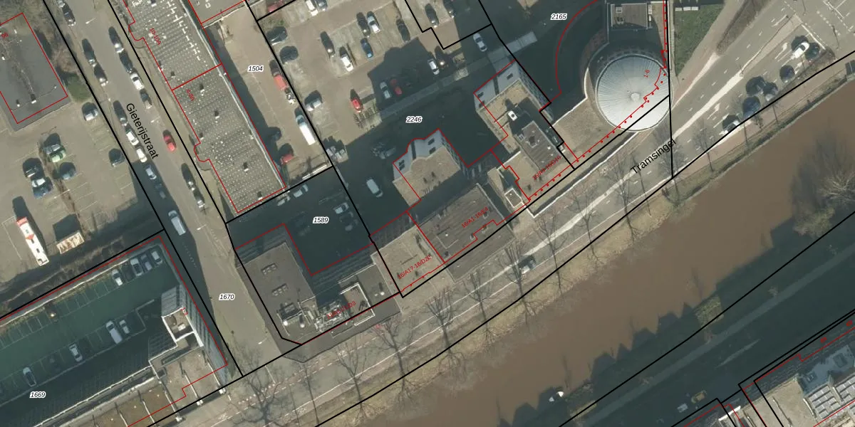 Het perceel waarop Tramsingel 16-C17 staat heeft een oppervlakte van 3077 m². Dit is een zeer groot perceel. De perceeloppervlakte wordt geregistreerd door het Kadaster. Gedetailleerde informatie over de maten van dit perceel kunt u vinden in het rapport Kadastrale kaart met maatvoering van Tramsingel 16-C17.